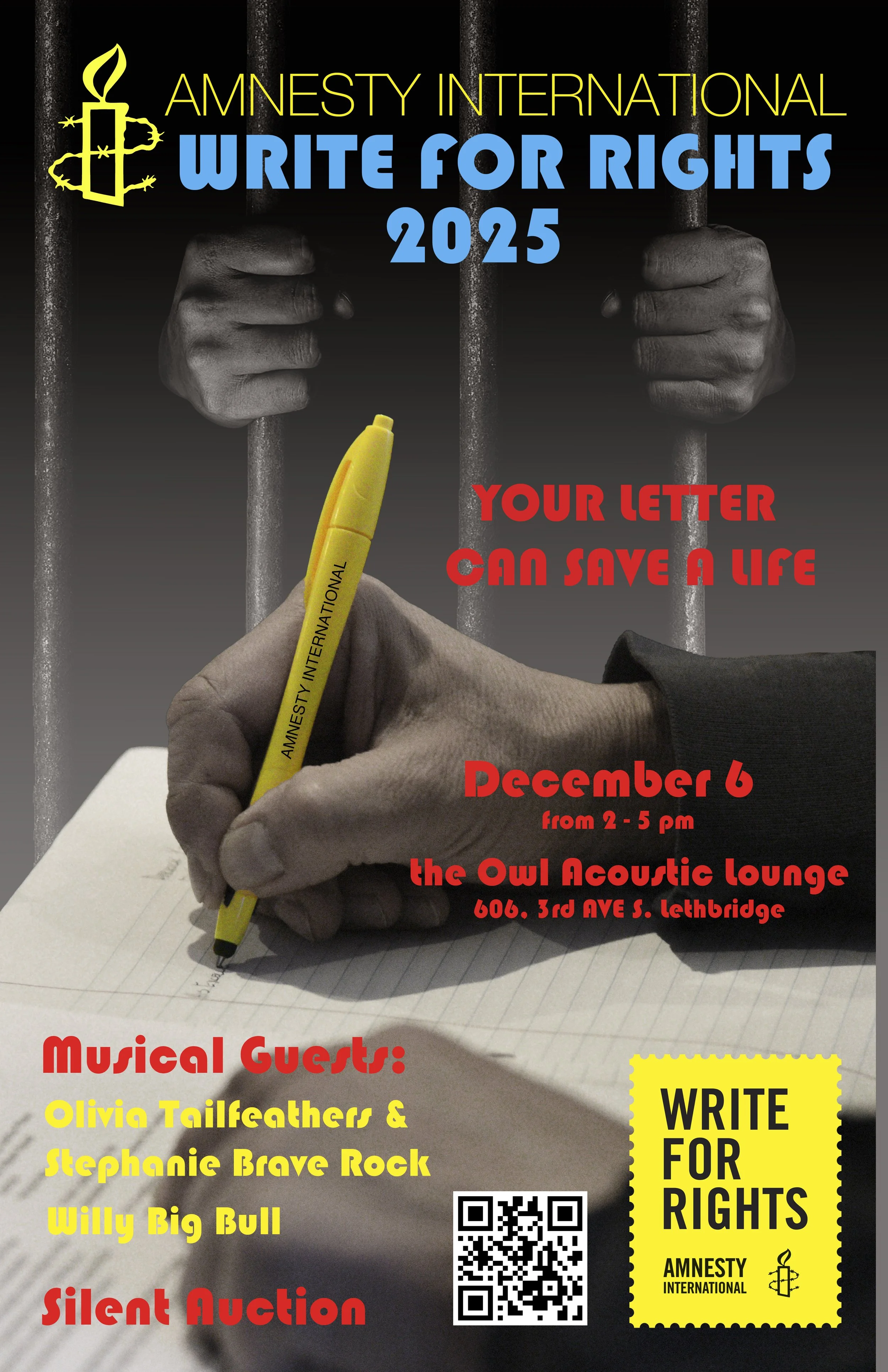 This year is our 19th annual Amnesty Lethbridge’s Write 4 Rights event.